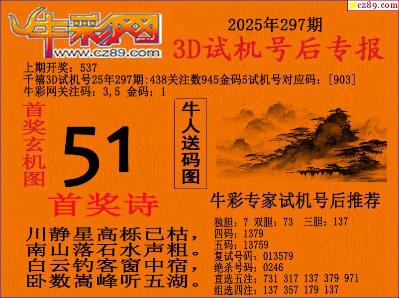 25年297期3d试机号后牛彩网专报