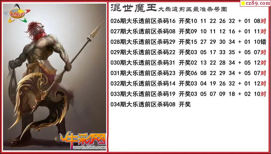 大乐透034期程咬金前区精准杀号图
