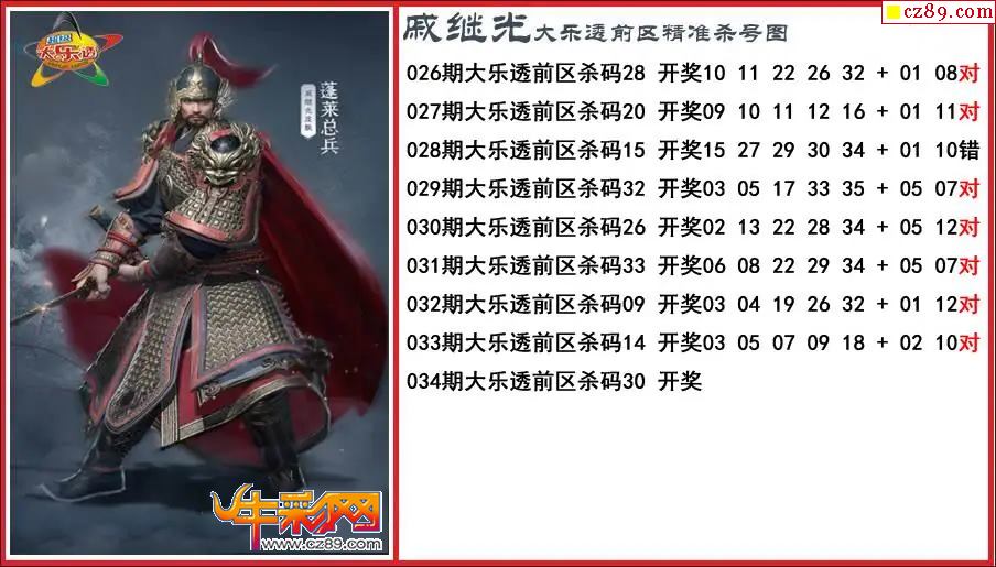 大乐透034期戚继光前区精准杀号图