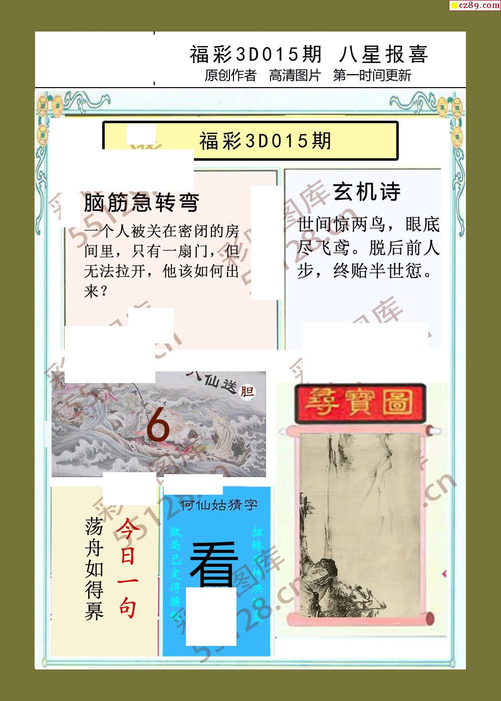 > 八星报喜26年015期福彩3d画谜