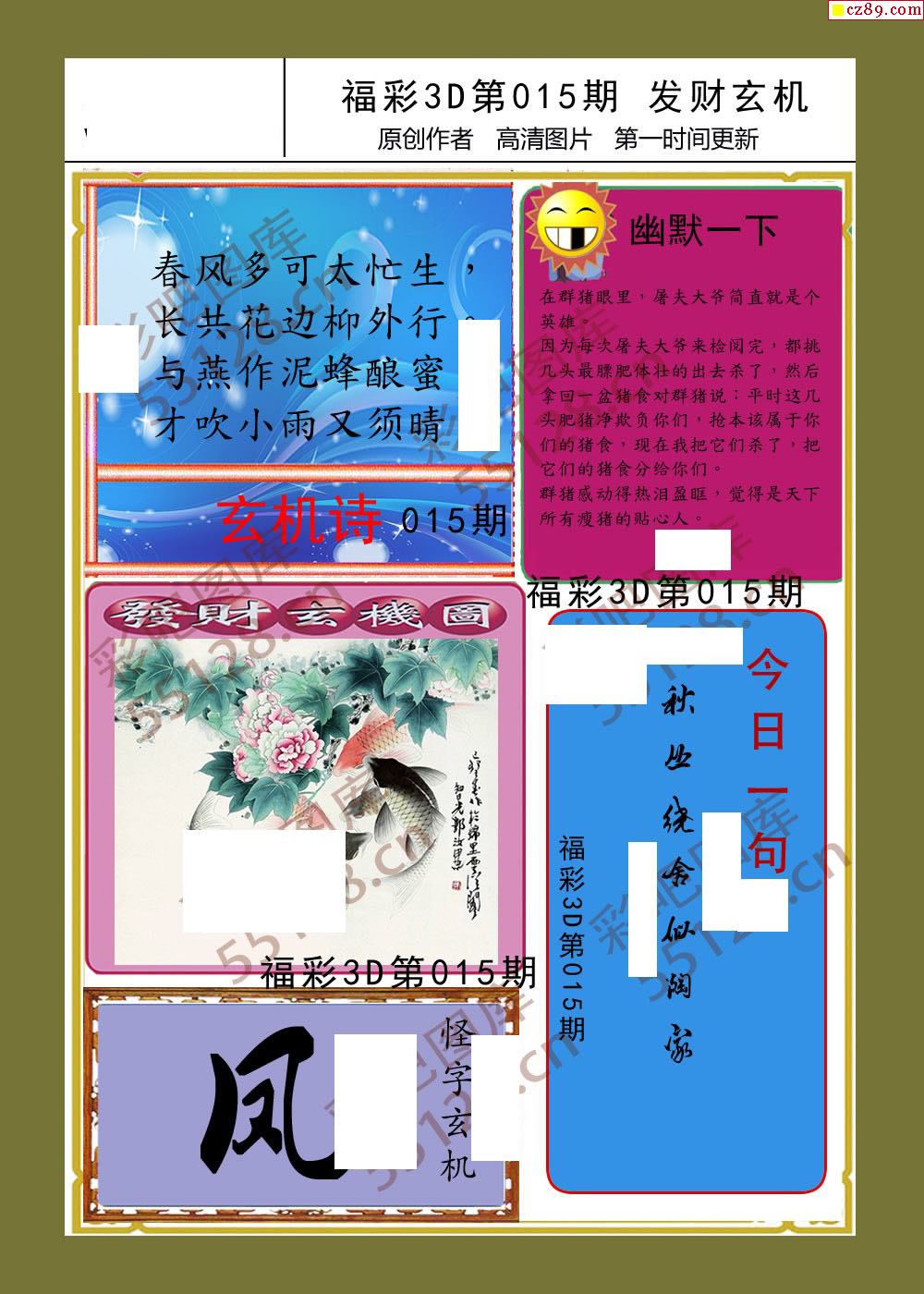 发财玄机26年015期福彩3d画谜
