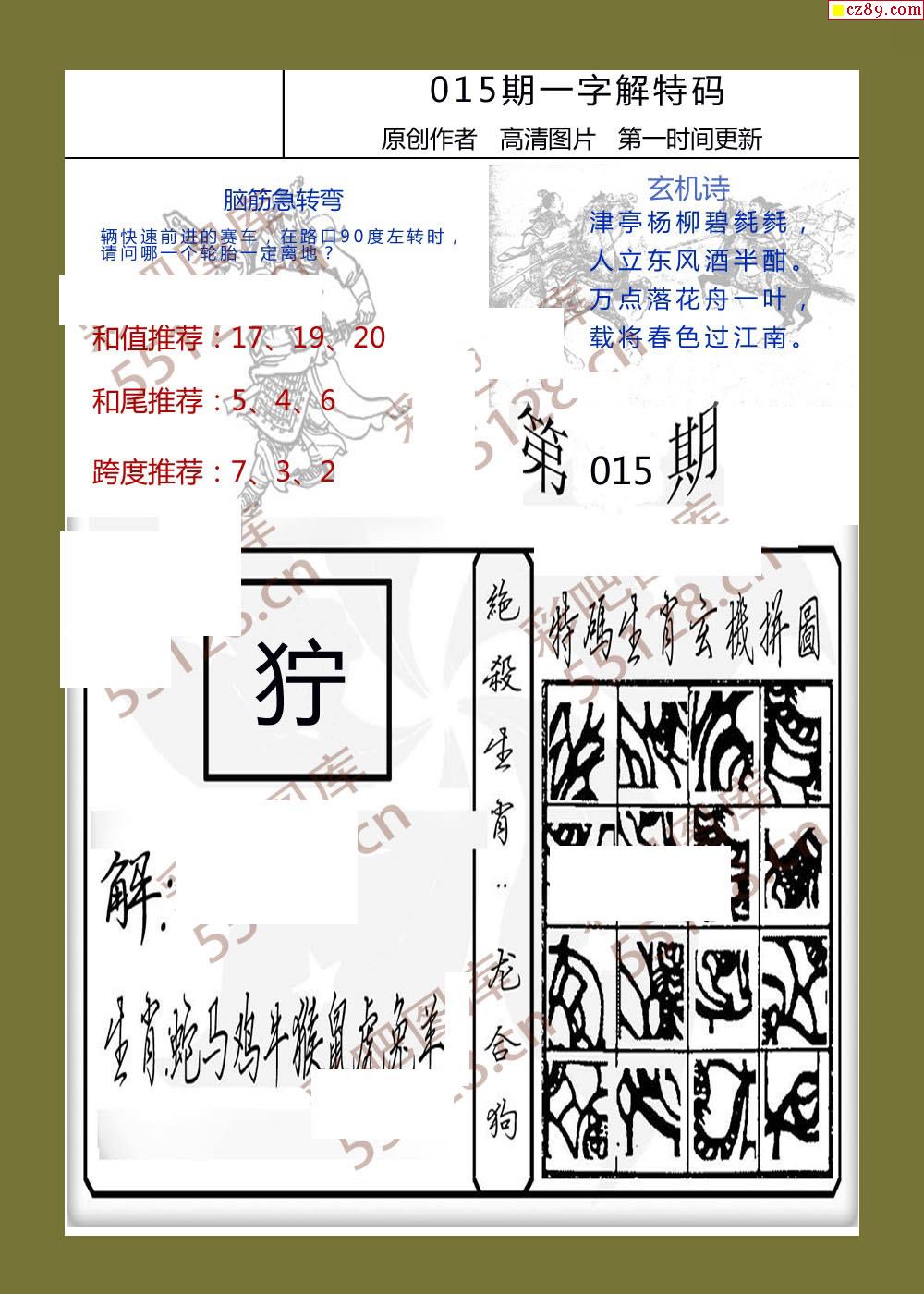 天宇多字和值谜2026015期3d图谜